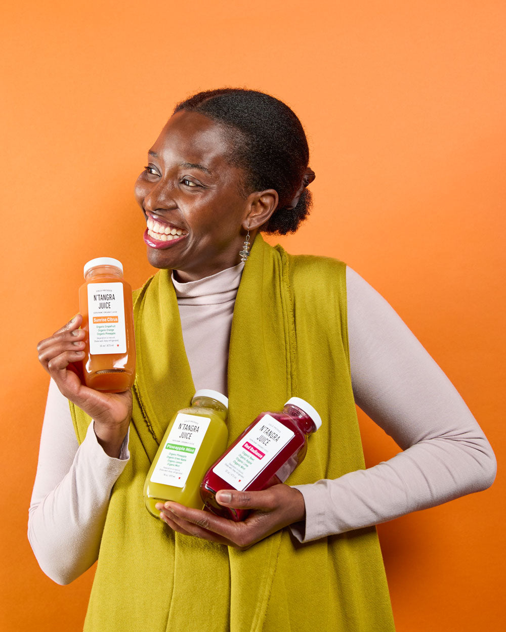 The name N’Tangra carries both purpose and poetry. It begins with Ntangu, a Kikongo word from Congo Central that means “time,” “sun,” or “hour.” It speaks to life’s natural rhythm, the rising and setting of the sun, the seasons of change, the sacredness of each moment. It reminds us to slow down, to return to what’s pure and nourishing. The second part, Gra, comes from my name, Grace. It’s a quiet signature woven into the brand, a reflection of the care and intention behind every bottle. Together, N’Tangra is both a tribute and a promise. It honors nature’s timing, pours love into the process, and presses each juice as a gift of renewal for body, spirit, and time itself.